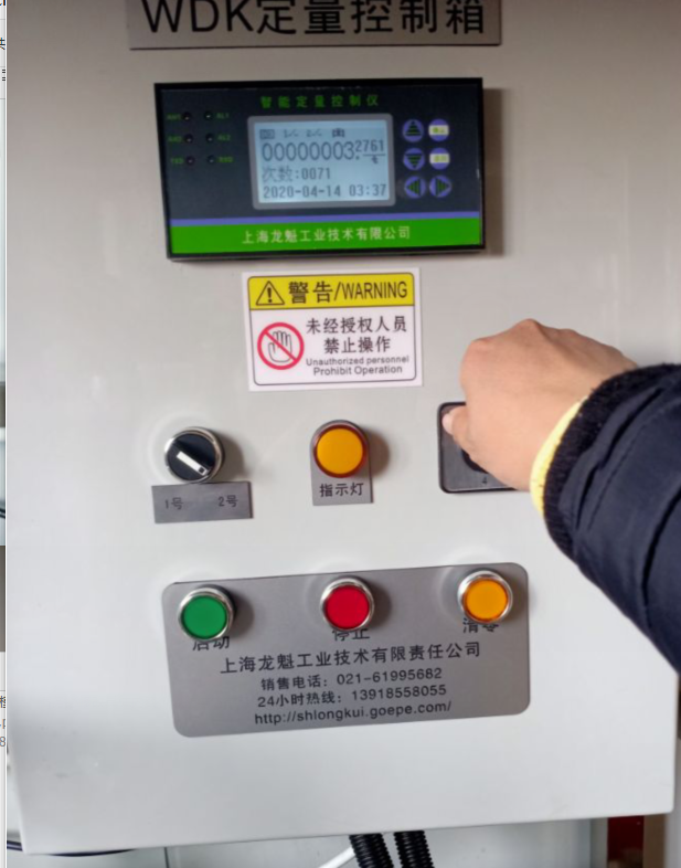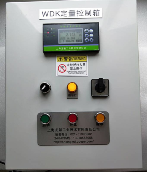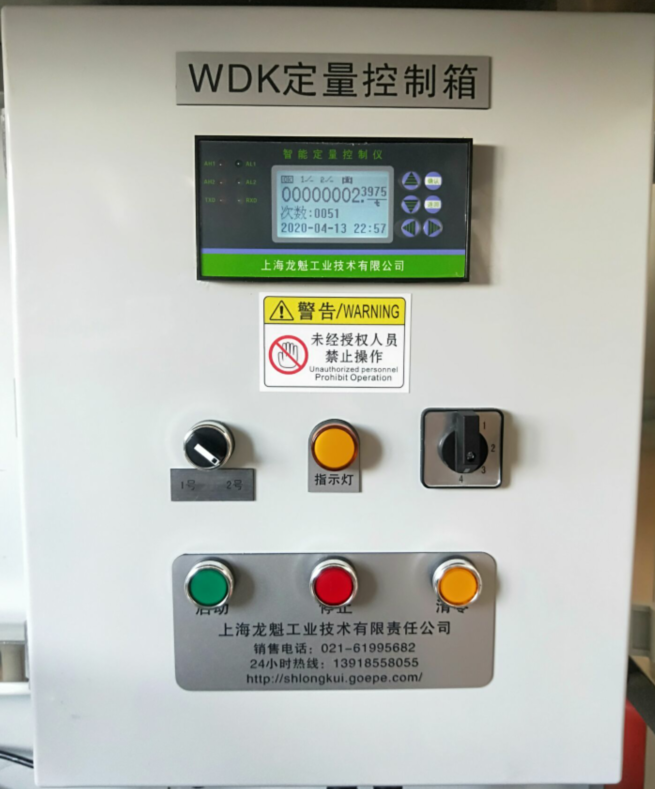 4、WDK變頻型定量控制柜內的定量控制儀為全中文/英文液晶顯示,每次定量控制值可以根據需要任意更改,只需在定量控制儀的內操作完成;