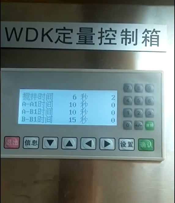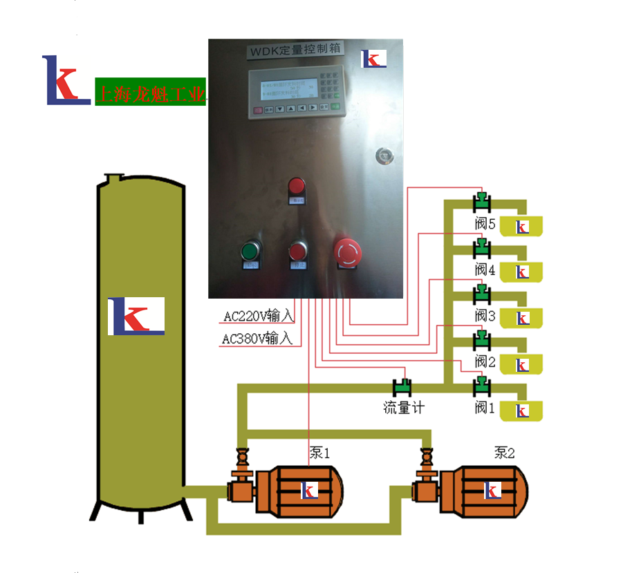 4、龍魁WDK文本式或觸摸屏定量控制柜(箱)內的定量控制儀為全中文/英文液晶顯示,每次定量控制值可以根據需要任意更改,只需在定量控制儀的內操作完成;